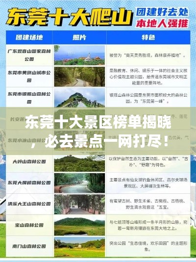 东莞,作为广东省的一个重要城市,不仅经济发展迅速,也拥有丰富的旅游资源和美丽的景点,以下是东莞景区排名前十名,这些景点以其独特的魅力和吸引力,吸引了无数游客前来观光旅游。